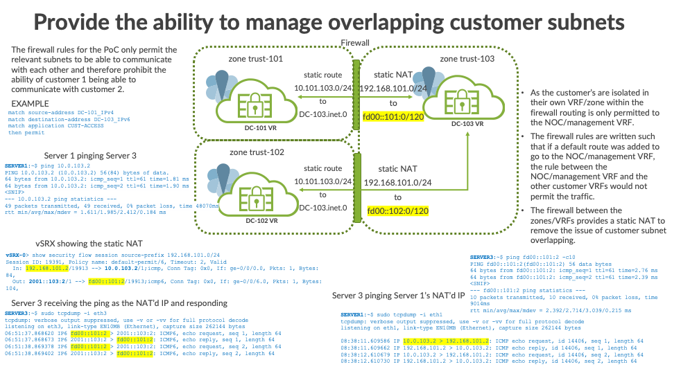 Explicitly preventing the NOC/management IPv4 subnet(s) communicating with the customer IPv4 subnets, even if the customer IPv4 subnets overlap.